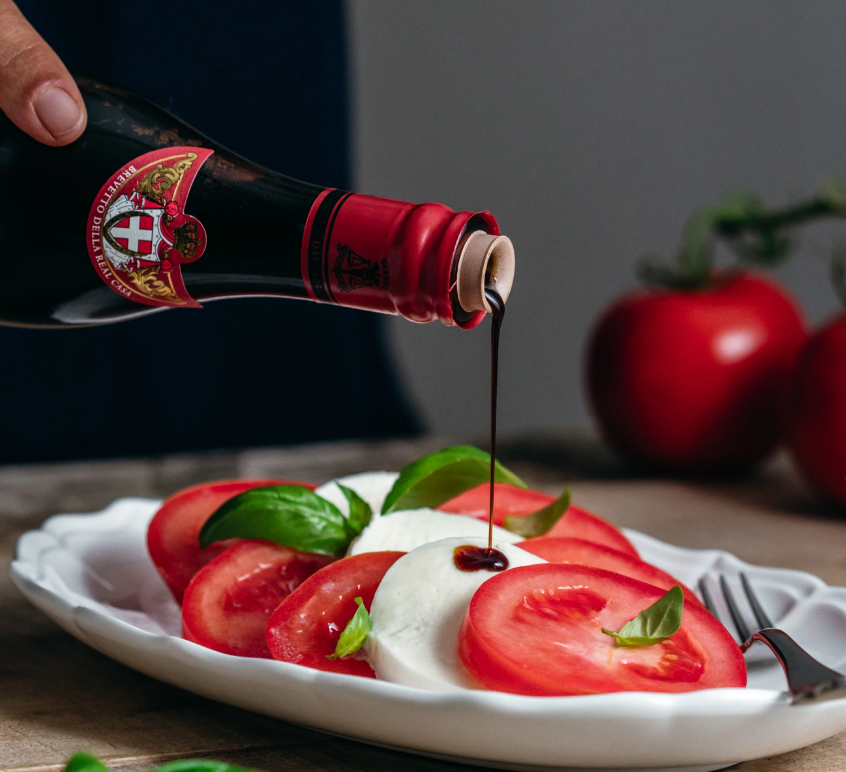 Born from a historic family recipe from the beginning of the 20th century, this Balsamic Vinegar is born from sweet, sundried grapes. Aromas and flavors of plum jam and red fruits intertwine with hints of honey and vanilla in a considerable dense and sweet dressing, perfect as a fresh dressing for various savory or sweet dishes. Recommended with ravioli, fresh pasta, grilled meats, grilled vegetables, raw fish, fruit salad, and dessert.