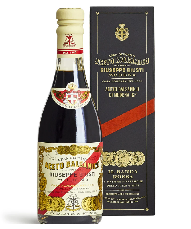 The ultimate pride and expression of the art of Giusti vinegars, the “Banda Rossa” was the personal gift from Uncle Giuseppe to family members. Of great body and concentration, it is distinguished by its extraordinary complexity and rich bouquet of aromas. Notes of plum, black cherries, and sweet spices, infused with the fragrances of ancient woods in which it was left to age, persisting long after a taste. Ideal with risotti, ravioli, red meat, aged cheeses, and ice cream.