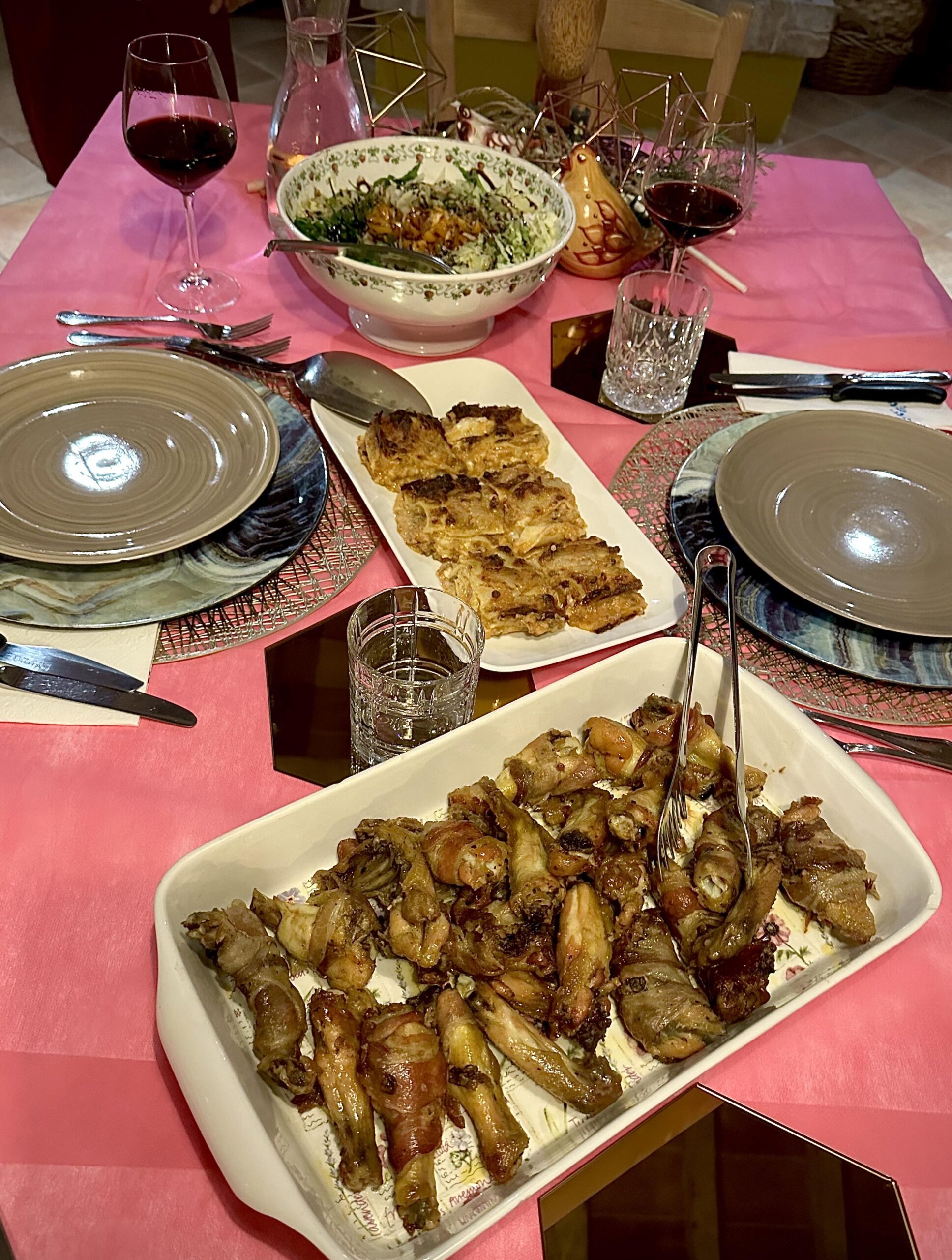 A brief silence — a caesura — falls as the first bites are taken. Then conversation resumes, melodic and layered.